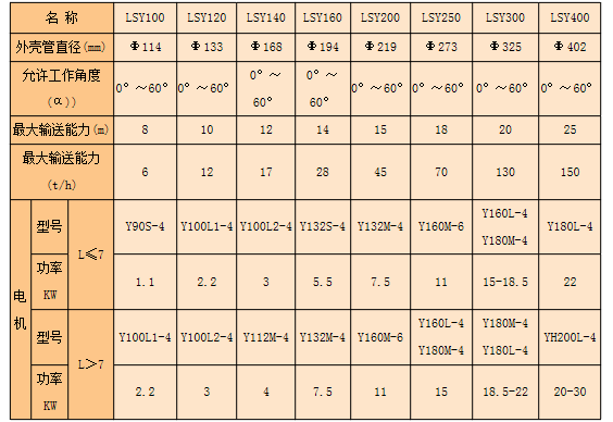 LSY螺旋輸送機與其他輸送設備相比較,具有結構簡單、橫截面尺寸小、密封性能好等特點,可以中間多點裝料和卸料,操作安全方便以及制造成本低。設備缺點是機件磨損較為嚴重,輸送量較皮帶機低,消耗功率大以及物料在運輸過程易被破碎。